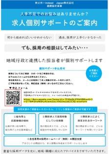 Indeed Japan株式会社(旧リクルート)との、地域活性化に向けた雇用促進に関する協定に基づき、Airワーク 採用管理を活用した自社専用の採用ホームページの無料開設支援などの「求人個別サポート」を行っています。