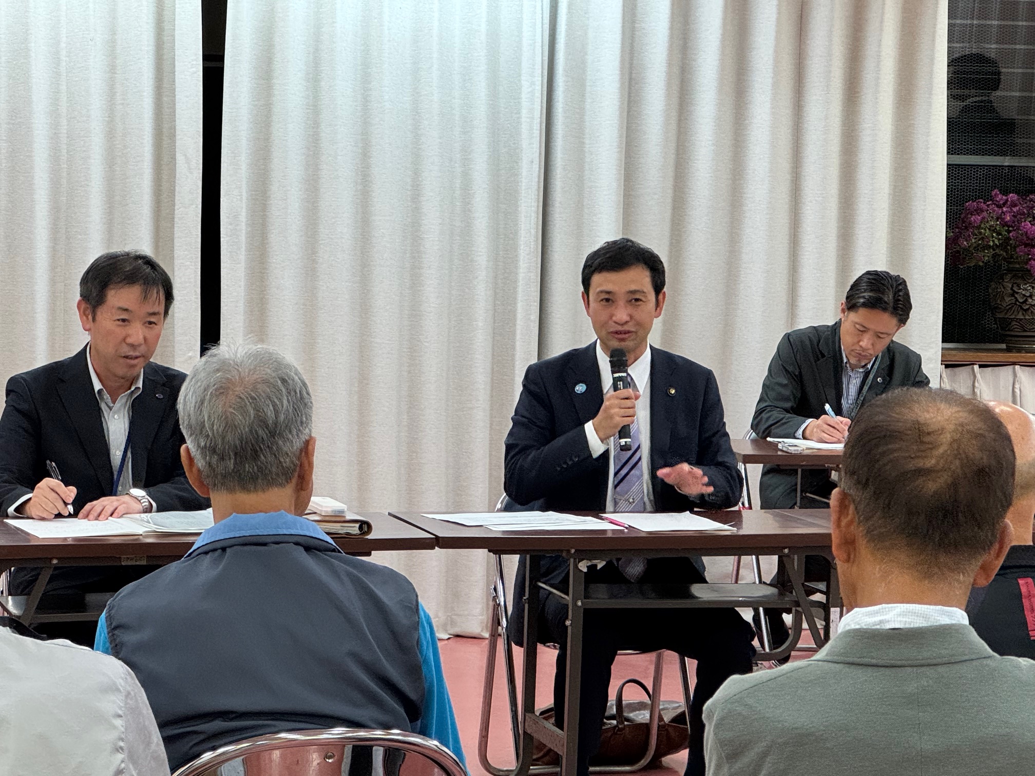 先日、久那公民館において「ふれあい懇談会」を開催しました。今回の懇談会では、「二十歳のつどい」や水道料金の引き上げ、防災行政無線の運用、ふるさと納税、テレビ共同受信施設組合、鳥獣対策、地域の道路整備など、幅広いテーマについて市民の皆さまとの意見交換を行いました。