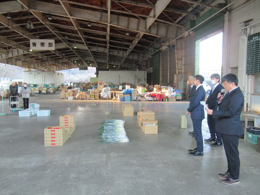 元気な掛け声が場内に響き渡り、トマトやきゅうり、白菜などが次々と競り落とされ、その活気は年の初めを告げる風物詩として息づいていました。 近年、市場を取り巻く環境は一層厳しさを増していますが、地域の皆さまに安心・安全で新鮮な食品を届けるという市場の役割は非常に重要だと考えております。