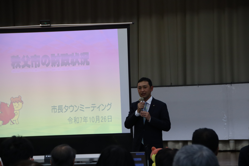 10月26日(日)に「財政状況」をテーマにした市長タウンミーティングを開催しました。秩父市の未来を一緒に考えていくための大切な機会として、毎月開催している市長タウンミーティングの中でも、特にこの財政状況のテーマは非常に重要なものと位置付けています。秩父市と市民とのコミュニケーションを深め、皆さんのご意見を直接伺うことで市政の透明性を向上させていきます。