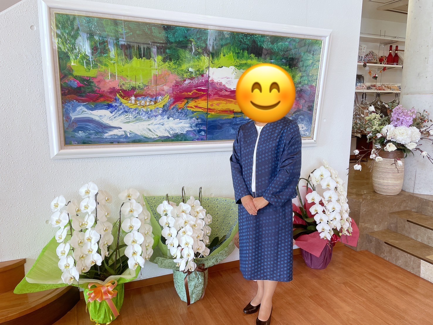 秩父市中宮地町にある「新啓織物」の秩父銘仙反物を接客時に着用する着物に仕立てていただきました。