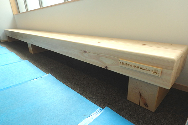合計8基のベンチのうち、背もたれ付きのベンチ6基は新庁舎4階の議会ロビーへ、また、長さ5.2mもある大型ベンチ2基は、新庁舎2階の廊下へ設置しました。