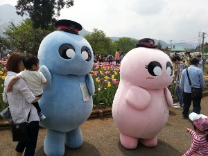 今日来てくれたのは、秩父鉄道の「パレオくん&パレナちゃん」。はじめまして!