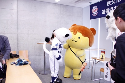 この前、秩父市と(株)西武ライオンズとの間で連携協力に関する基本協定の締結式があって、そこにボクも呼ばれたのダ!